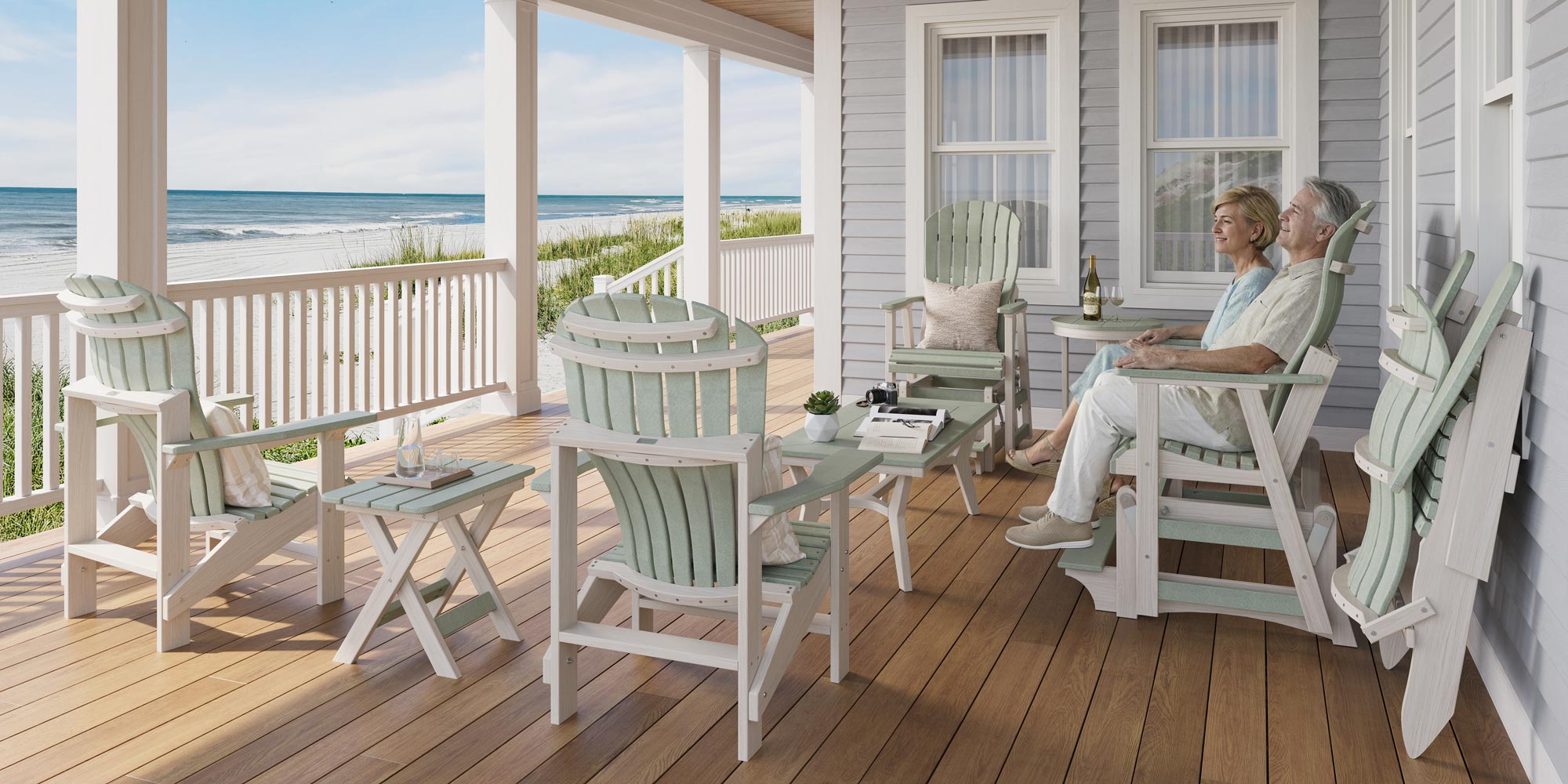 All of our poly furniture comes with a variety of custom color options for you to choose from. Explore options in poly colors, cushion fabrics, and more.